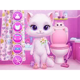 Kids, have fun with your fluffy virtual pet cat in Meow Cat Care! You’ll be a doctor to treat it, do grooming like petal baths, dress up with cute outfits, cook treats and clean— lots of care in this simulation!